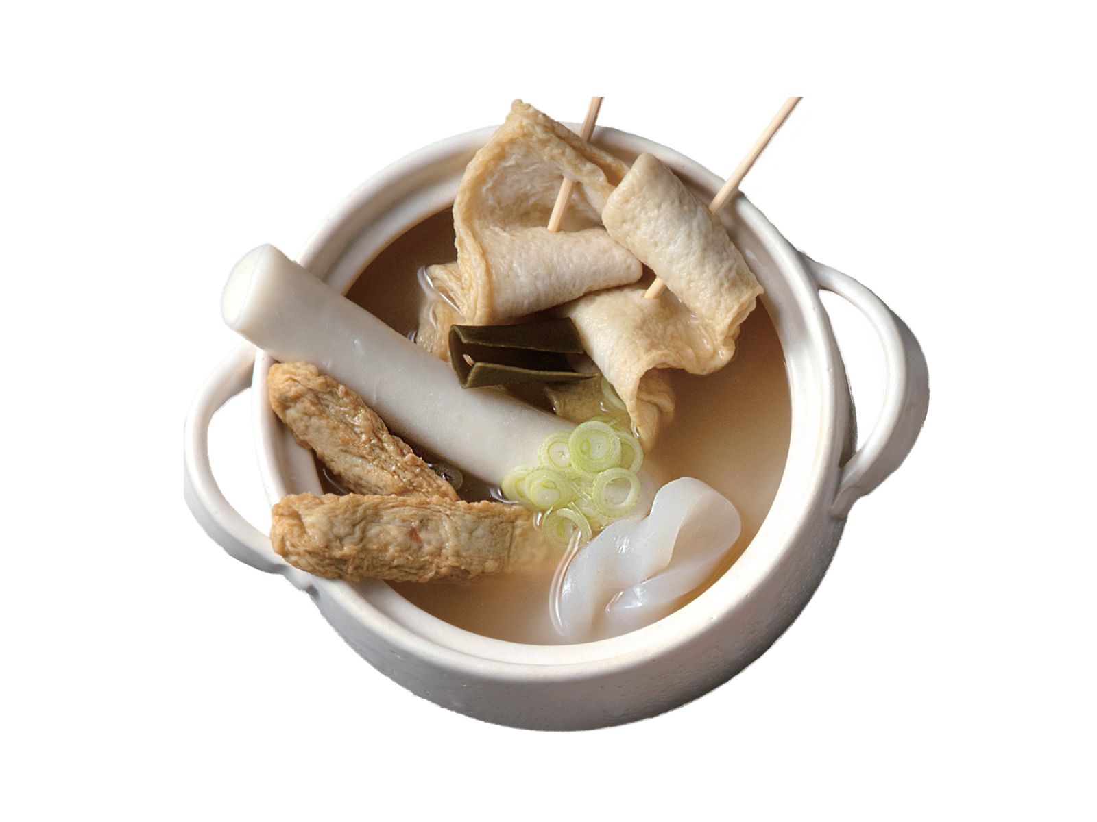 Mul-tteok Odeng Tang is a Korean soup featuring chewy rice cakes and fish cakes in a light, savory broth, often enjoyed as a comforting snack.